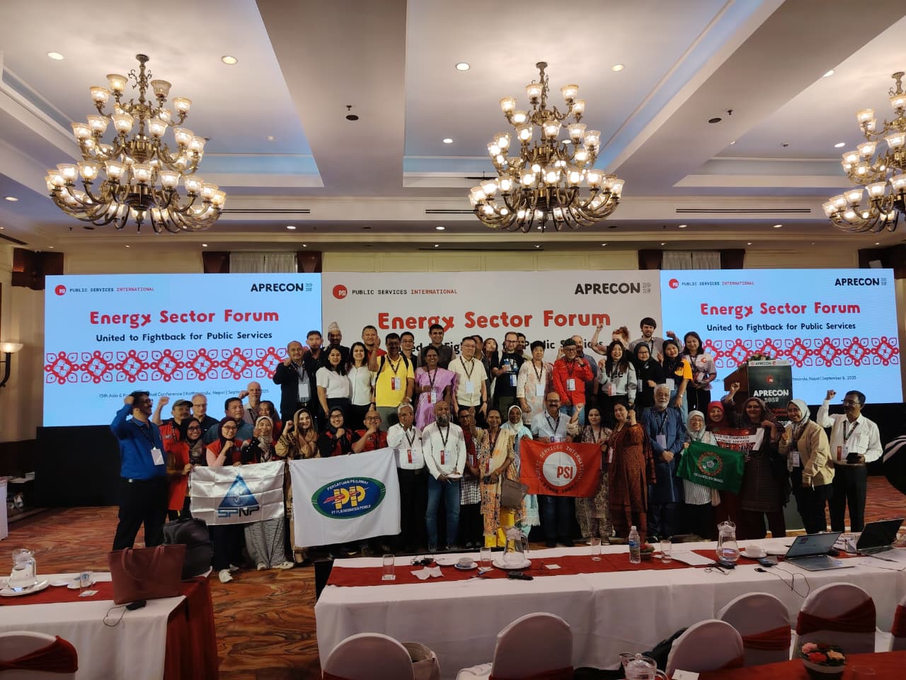 Ninety-two public sector unions from 23 Asia-Pacific countries have unanimously endorsed public pathway approaches to energy transition. Representing 1.1 million unions affiliated to Public Service International (PSI) the 300-person delegation met in Kathmandu, Nepal, during September 9th-12th for PSI’s 15th regional conference (APRECON 2025).